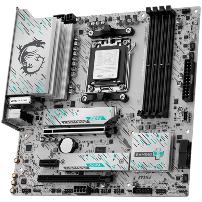 MSI B850M GAMING PLUS WIFI, mATX, Socket AM5, 4x DDR5 Dual Channel DDR5 up to 8200(OC)MHz, 2x PCIe x16 slot, 2x M.2 slot, 3x USB 5Gbps, 3x USB 10Gbps, 2x USB 10Gbps Type-C, HDMI, DP, 7.1 HD Audio, 5G LAN, WiFI 7, BT, 3Y