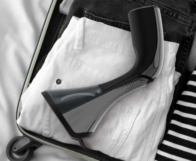 Побира се във всяка раница или малък куфар. Лек, компактен и мощен уред за гладене на дрехи, който е винаги с Вас