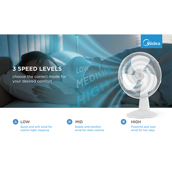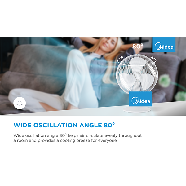 Table fan, 40W, 40cm, 3 speeds, mechanical, noise level: 50-60 dB, Oscillation 80°, Tilting +24° -12°