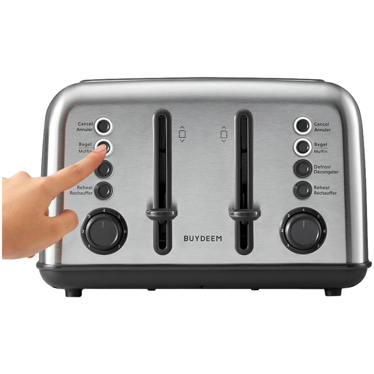 One turn and one press, saves time and effort. LED indicator buttons, function mode at a glance. Kickstart a day with perfect breads from BUYDEEM, retro 4-slice metal toaster which is featured extra-wide slots toast different bagels and muffins. Just enjoy warm bread, bagel or use it to create delicious sandwich.