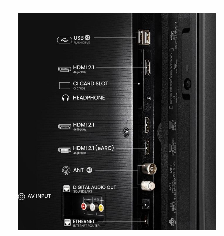 Изводи за свързване:3 HDMI, 2 USB, S/PDIF out, Audio (L/R) in, headphone, Composite (AV) in, Cl+, 2 RF In