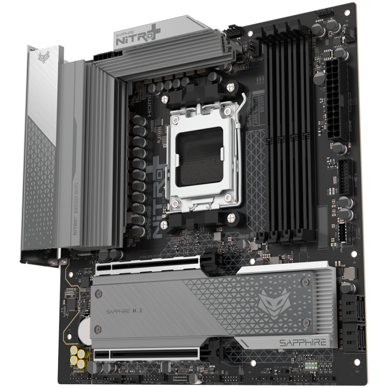 SAPPHIRE AMD B850M AM5 NITRO+ Ryzen R9/R7/R5, 4x DDR5 8000MHz, PCIE 5.0 x 16, 1x M.2 Gen5, 1x M.2 Gen4, LAN 2.5 Gbps, WIFI6, USB, Micro-ATX