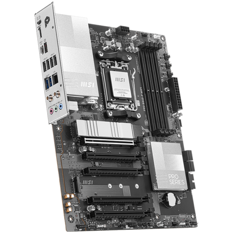 MSI PRO B840-P WIFI, ATX, Socket AM5, 4x DDR5 Dual Channel DDR5 up to 8000(OC)MHz, 5x PCIe x16 slot, 2x M.2 slot, 4x USB 2.0, 2x USB 5Gbps, 1x USB 10Gbps, 1x USB 10Gbps Type-C, HDMI, 7.1 HD Audio, 2.5G LAN, WiFi, BT, 3Y