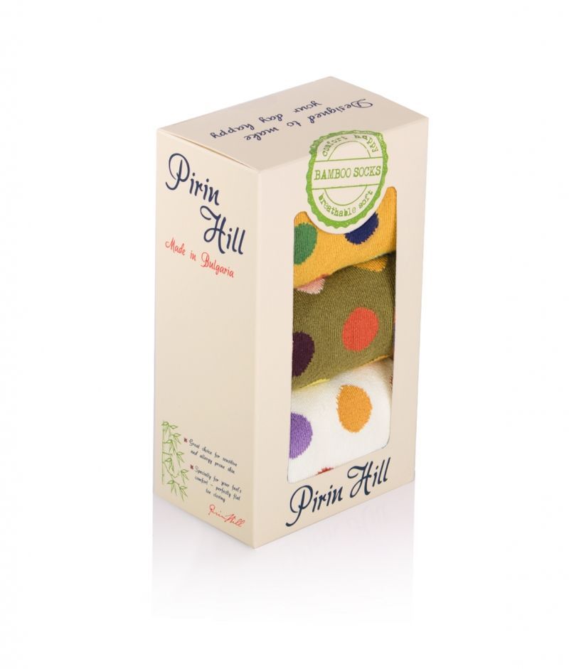 Кутия с 3 чифта Бамбукови чорапи на Точки - Жълт, Каки, Екрю