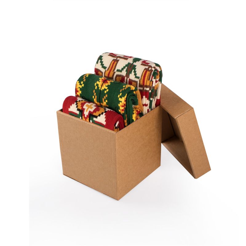 Кутия с 3 чифта Памучни чорапи Традиции - Цветен