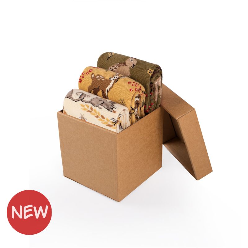 Кутия с 3 чифта Памучни чорапи Есенни Истории - Мишле, Сърна, Заек