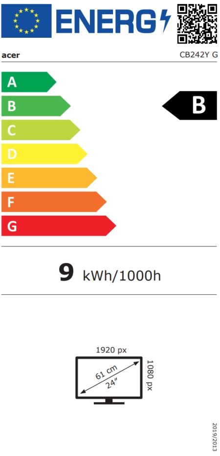Монитор Acer Vero CB242YGbmiprx, 23.8" FHD(1920x1080)IPS, ZeroFrame 120Hz Adaptive Sync, 1ms(VRB), 100M:1, 250nits, VGA, HDMI, DP, Speakers, Audio In/Out, Ergostand, EnergyStar, EPEAT Gold, Energy Efficiency Class B, Black, 3Y