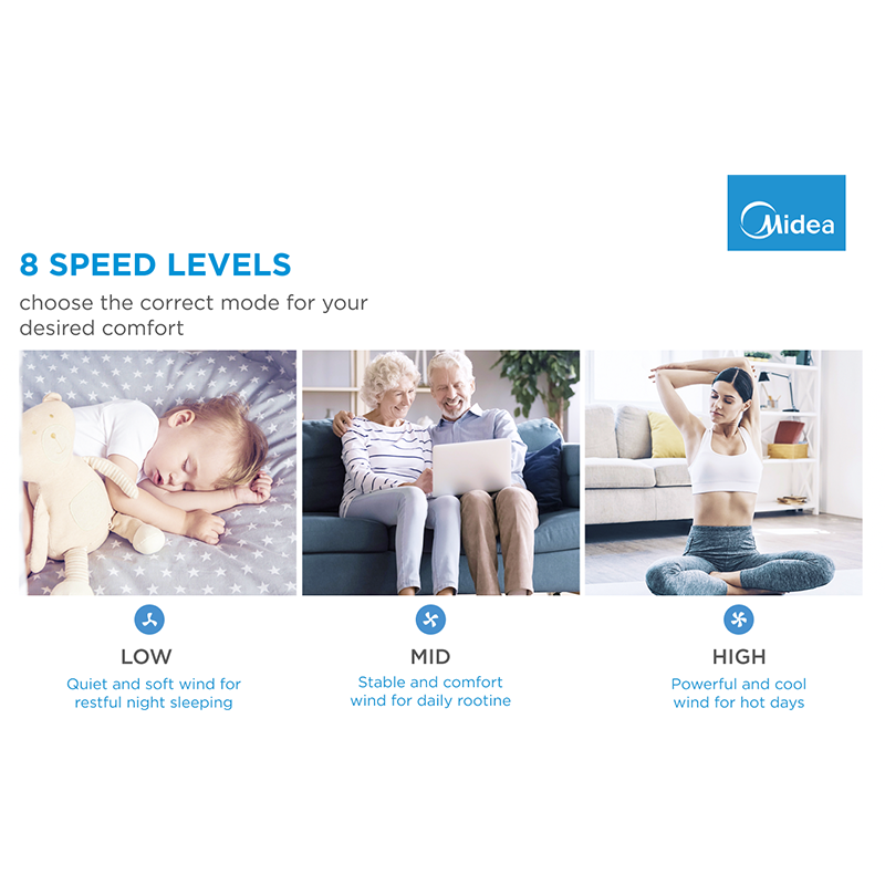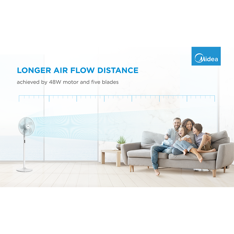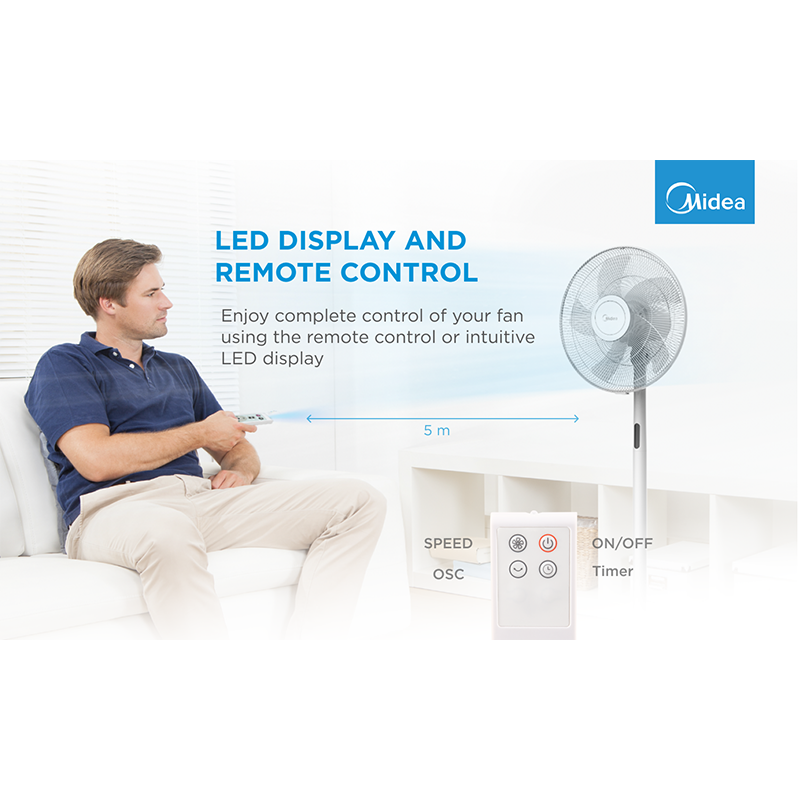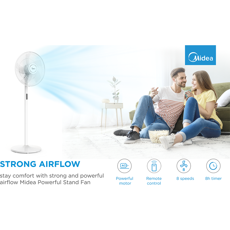 Stand fan, 48W, 40cm, 8 Speeds, 8H timer, LED display, electric control with remote, 3-in-1: Stand/Table/Table+Stand, control panel on rear motor cover, air flow: 41m³/min, noise level: 38-65 dB, Oscillation 85°, Tilting, 41m³/min, sleep mode