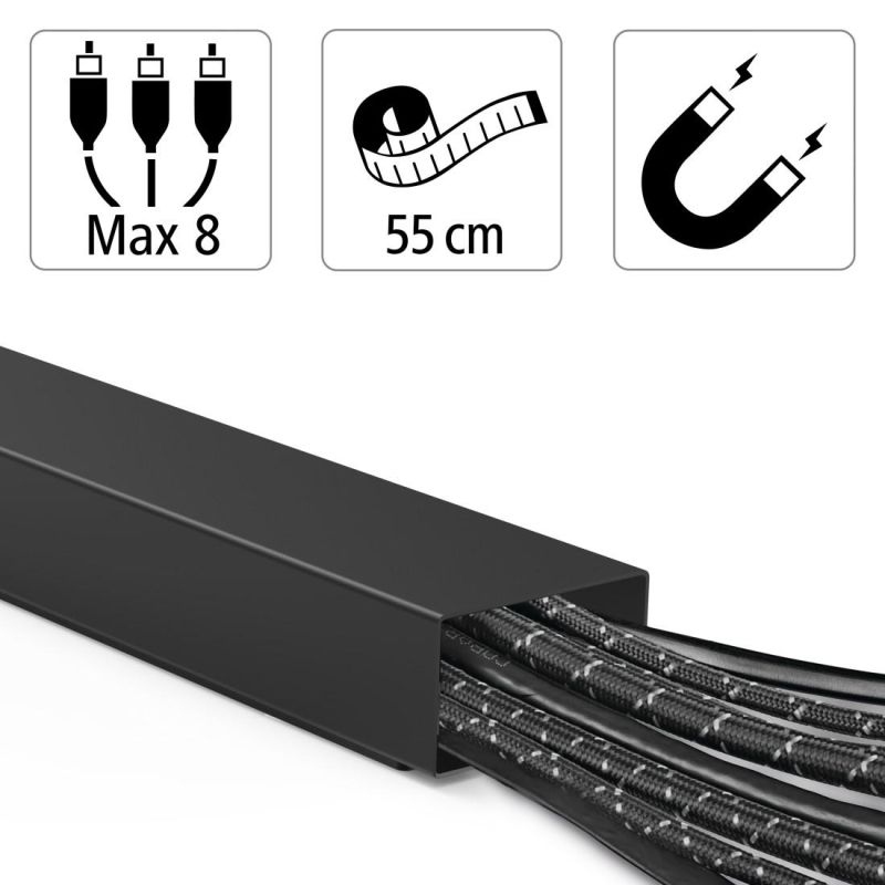 Начало HAMA Магнитен кабелен канал, 55 см, за монтаж на крака на маса, черен