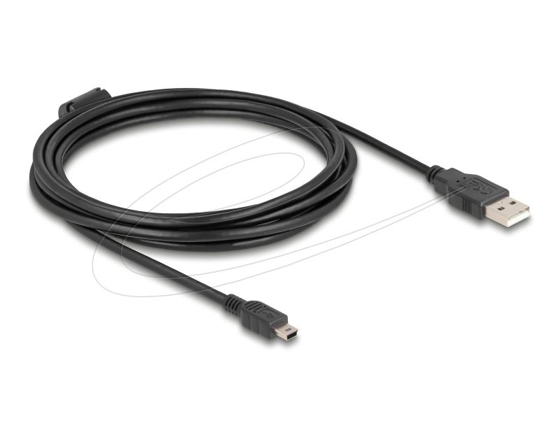Кабел Delock USB 2.0 мъжко към mini-B USB 2.0 мъжко, двойно екраниран, трансфер до 480 Mb/s, 3.0м, Черен