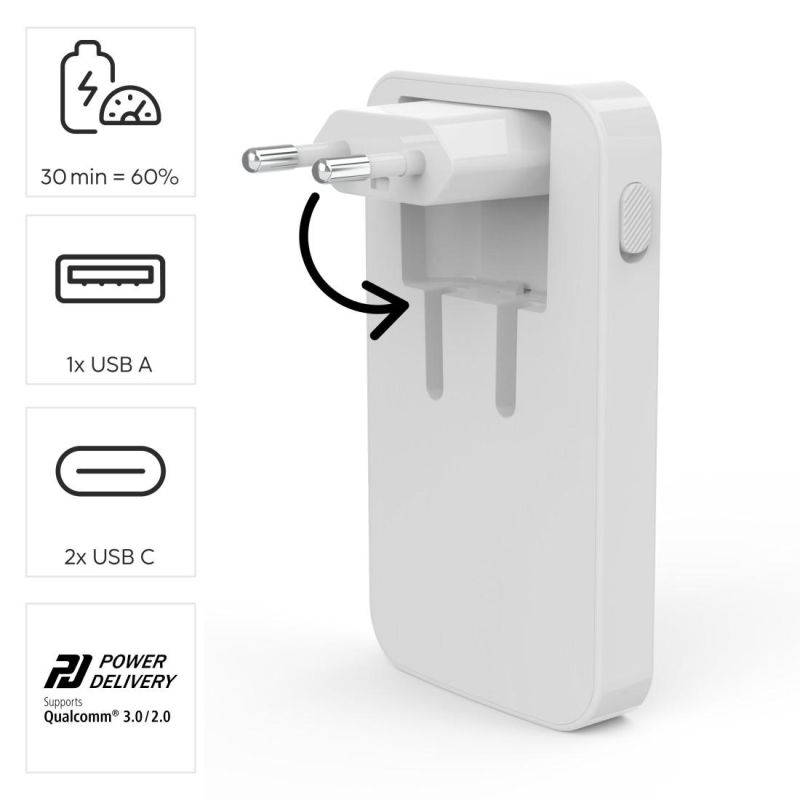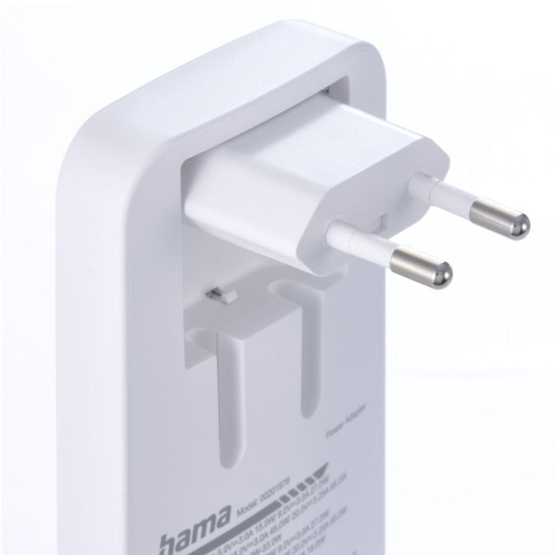 HAMA Бързо мини зарядно, 65W, 2x USB-C, 1x USB-A, PD, плоско, бяло