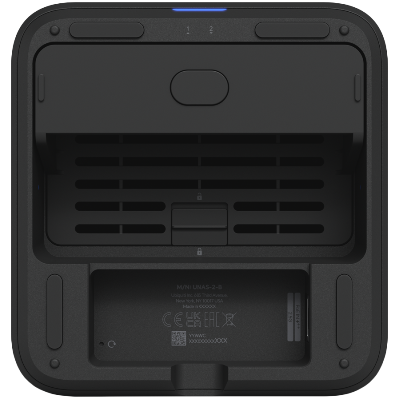 Ubiquiti UniFi UNAS-2-B-EU Network Attached Storage with (2) 3.5inch HDD bays, 2.5 GbE networking, USB-C connectivity, and an included PoE++ adapter, all in a compact footprint, black