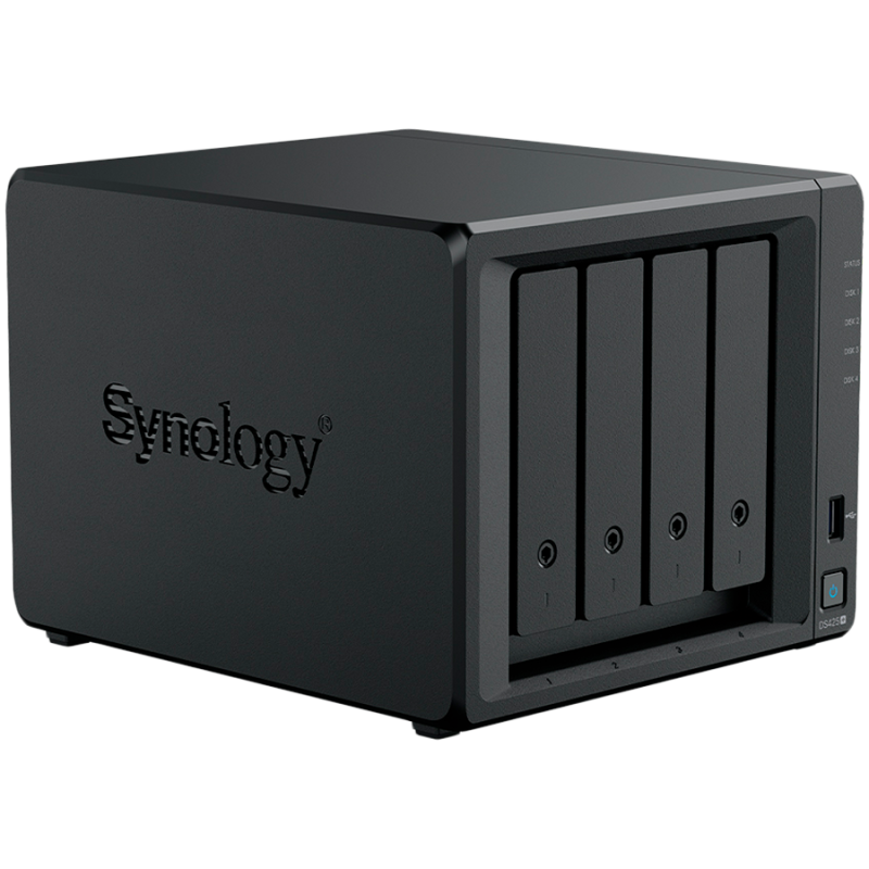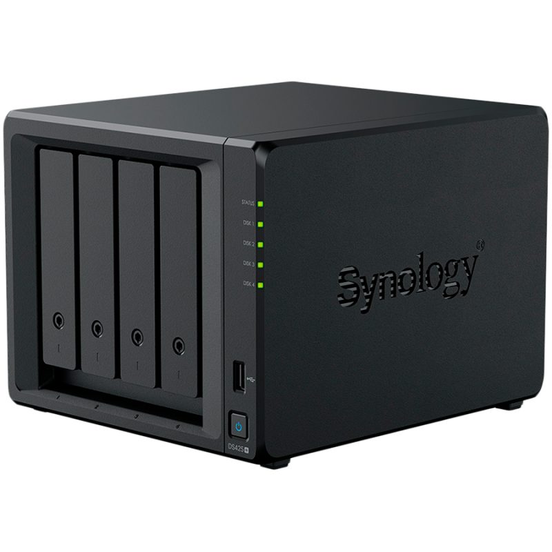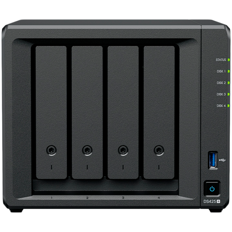 Synology DiskStation DS425+ Tower, 4-Bays 3.5'' SATA HDD/SSD, 2 x M.2 2280 NVMe SSD slot, CPU Intel Celeron J4125 4-core 2.0 GHz, 2 GB DDR4 non-ECC SODIMM, 1x RJ-45 2.5 GbE LAN, 1x RJ-45 1GbE LAN Port; 2x USB 3.2; 2.18 kg; 3yr warranty