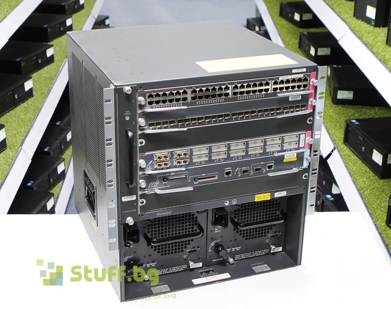 Начало РЕНОВИРАНА КОМПЮТЪРНА ТЕХНИКА Мрежови устройства Суичове Cisco Chassis: Catalyst 6500-E; Module: WS-X6148A-GE-TX, WS-X6724-SFP, WS-X6516-GBIC, WS-SUP720-3B, Two 3000W Power Supplies (AA23200)
