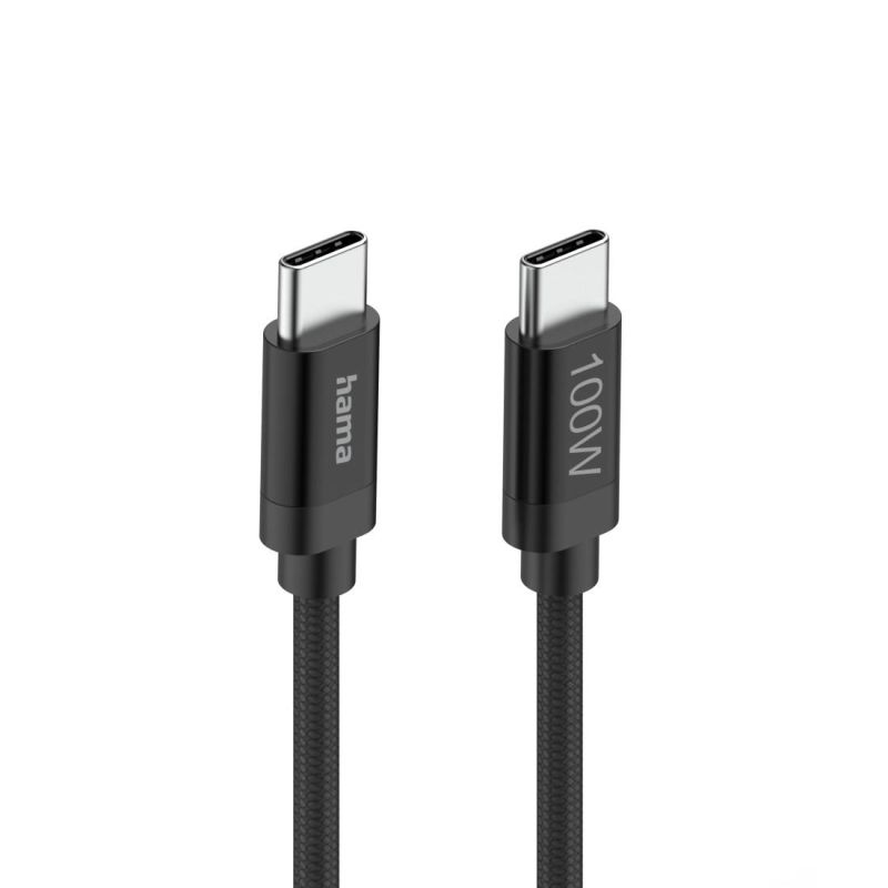 Hama Кабел за зареждане, "Fabric", USB-C - USB-C, 100 W, 1.5 m, Nylon, black
