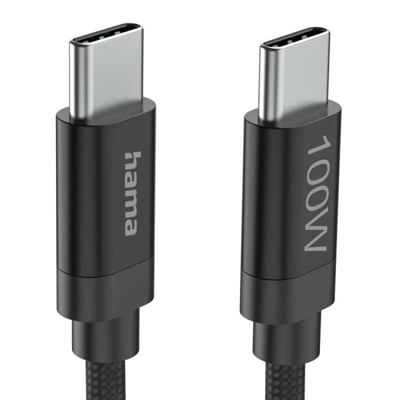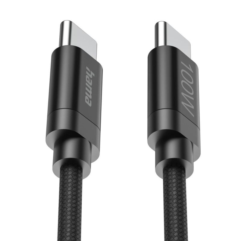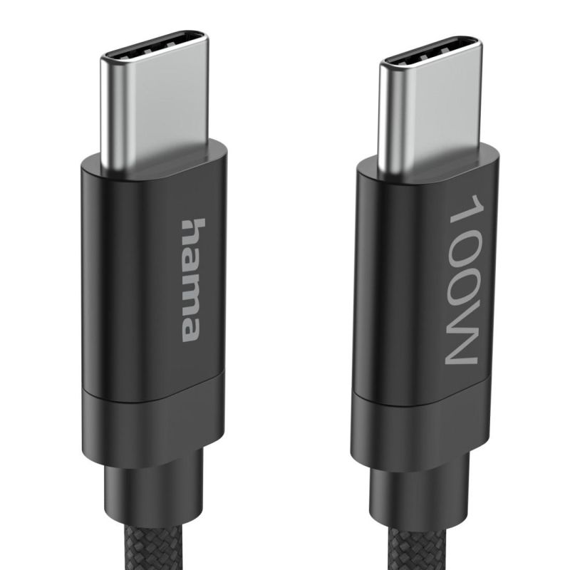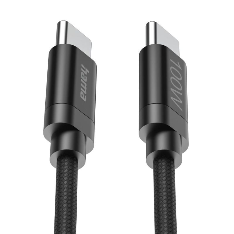 Hama Кабел за зареждане, "Fabric", USB-C - USB-C, 100 W, 3 m, Nylon, black