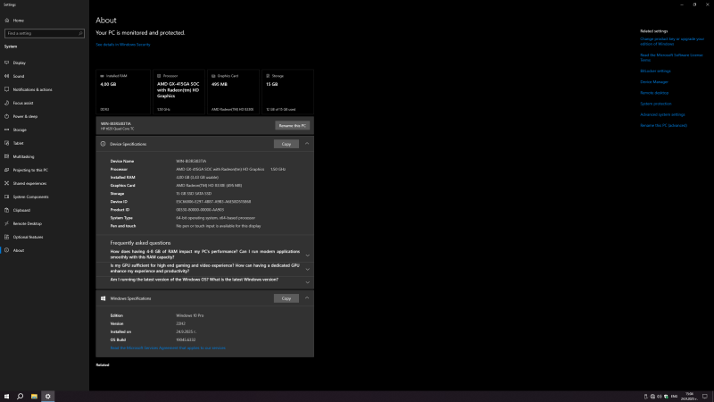 Процесор: AMD GX-415GA (quad core) 1.5GHz