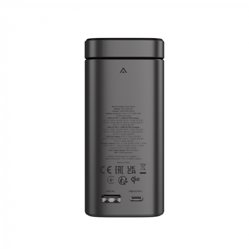 CANYON Qi2 magnetic power bank OnPower 150 15000mAh Aluminium Dark grey