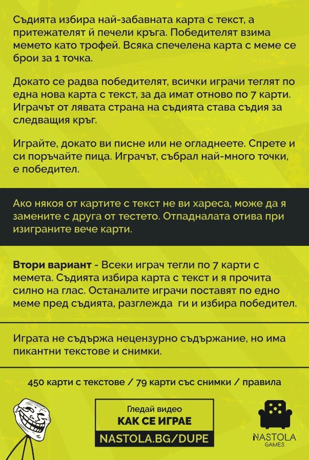 Включени са над 500 карти, с които може да направите безброй меме комбинации.