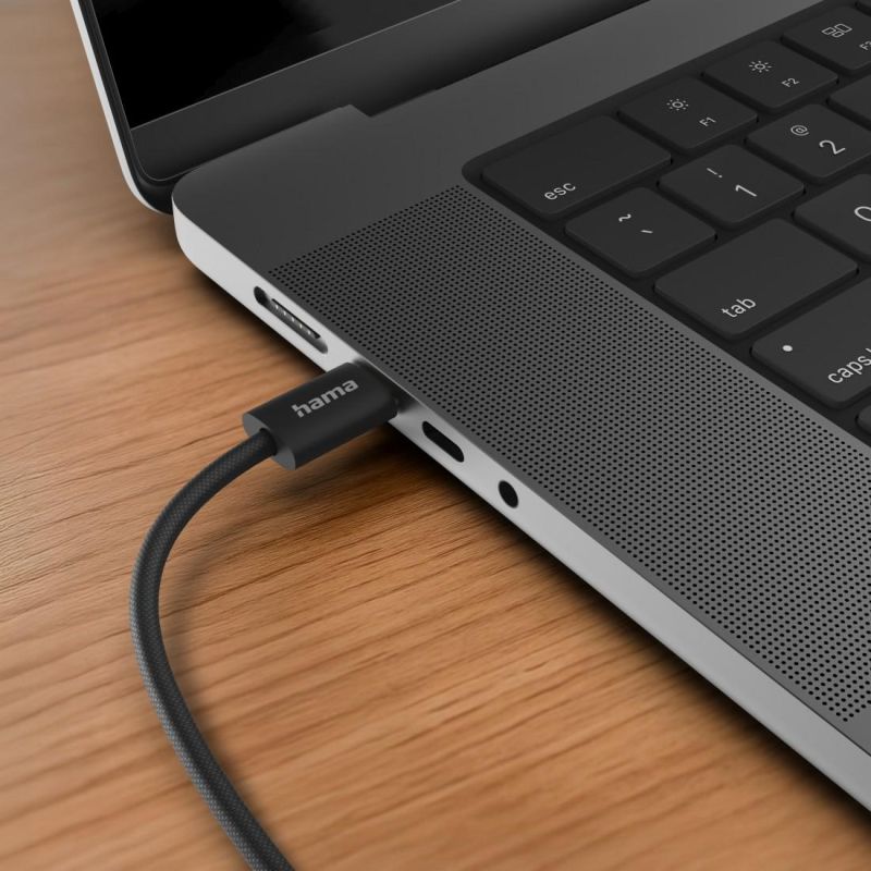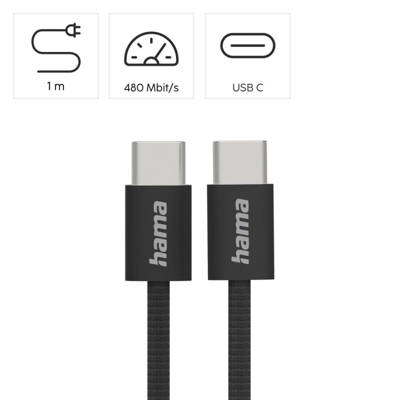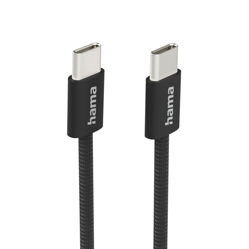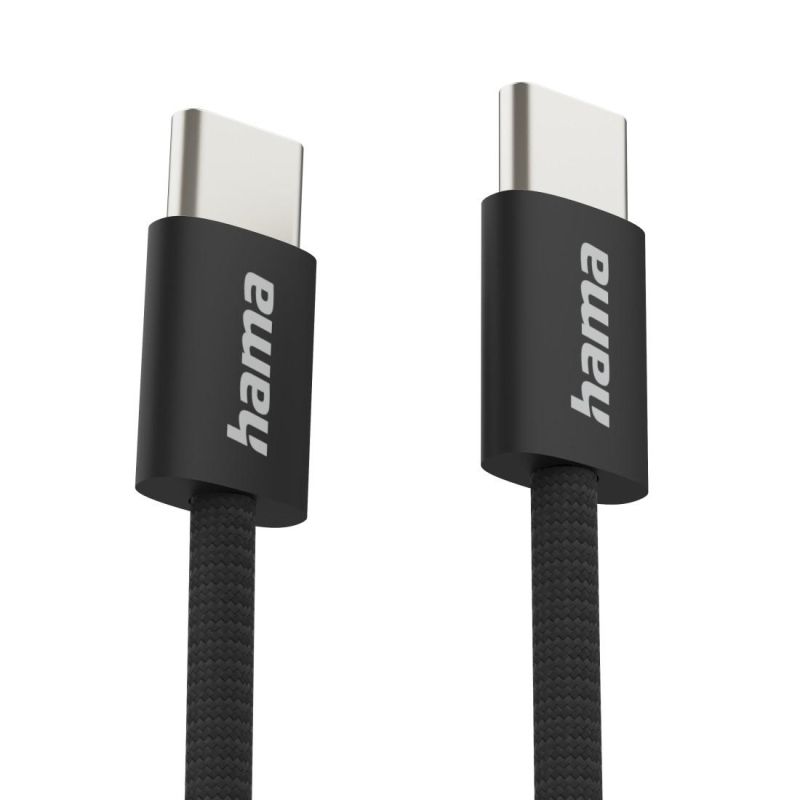 HAMA Кабел за зареждане "Fabric", USB-C - USB-C, 1 m, Nylon, черен