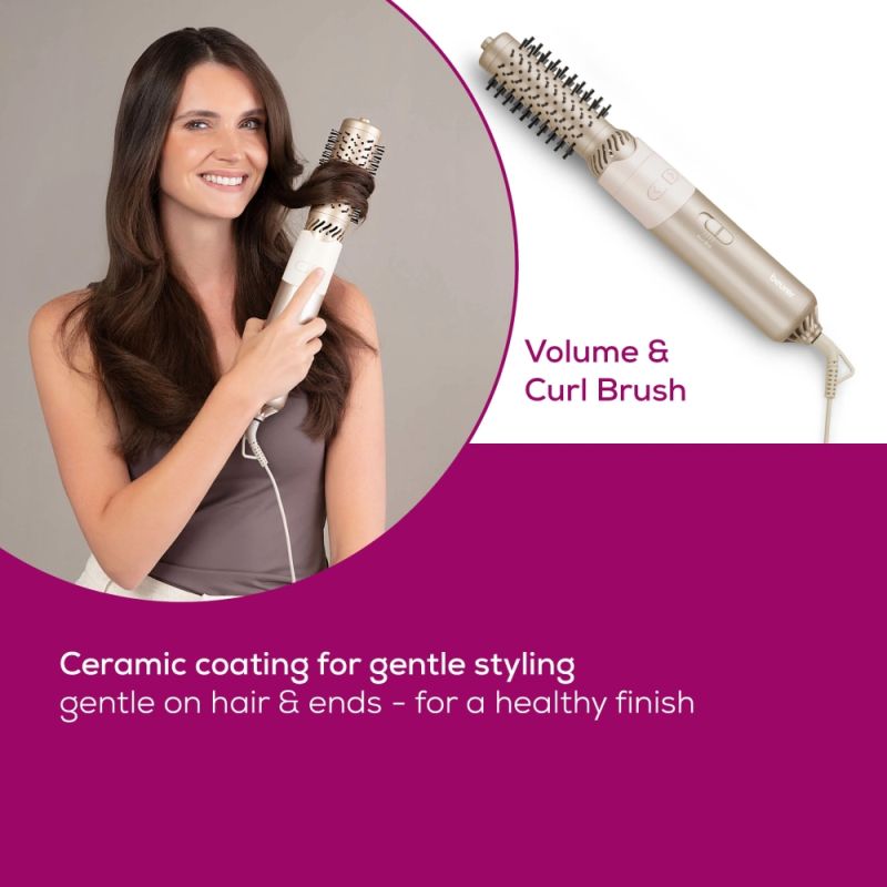 Електрическа четка за коса Beurer HT 85 Rotaiting hot air brush, ionic function, caremic coating, 2 interchangeable attachments: Heated brush and curling brush, 2 heat settings & cold air setting