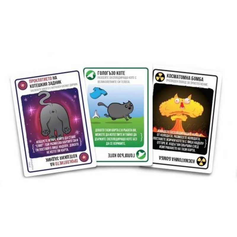 Гологъзи котета (Streaking Kittens) е второто разширение за Експлодиращи котета (Exploding Kittens) – всепризнатата игра с карти, която влезе в историята на Kickstarter като най-подкрепяния проект някога. Разширението включва 15 карти, съдържащи 8 нови типа действия и Гологъзо коте, което ви позволява да държите Експлодиращ8 ноо коте в ръката си, без да експлодирате! Страхотно, нали?
