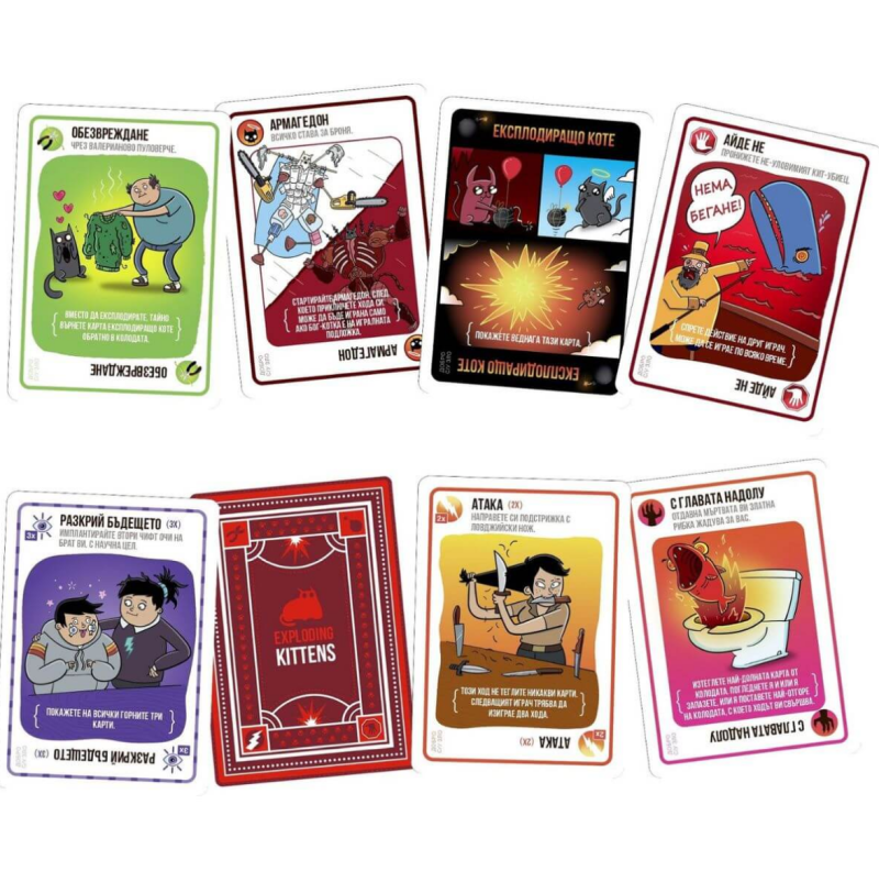 Играта представлява силно стратегическа, задвижвана от котета версия на руска рулетка. Играчите теглят карти, докато някой не изтегли Експлодиращо коте. В този момент те експлодират и вече са вън от играта. Освен ако не обезвредят котето чрез лазерна писалка или пуловерче от валериан. Или не използват други карти, чрез които да насочат Експлодиращото коте към другите играчи.