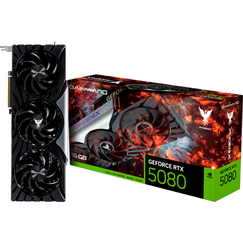 Gainward GeForce RTX 5080 Phoenix 16GB GDDR7, 256 bit, 1x HDMI 21b, 3x DP 21b, 3 Fan, 1x 16pin pwr connector, 850W, 331.9 x 133.1 x 60 mm,