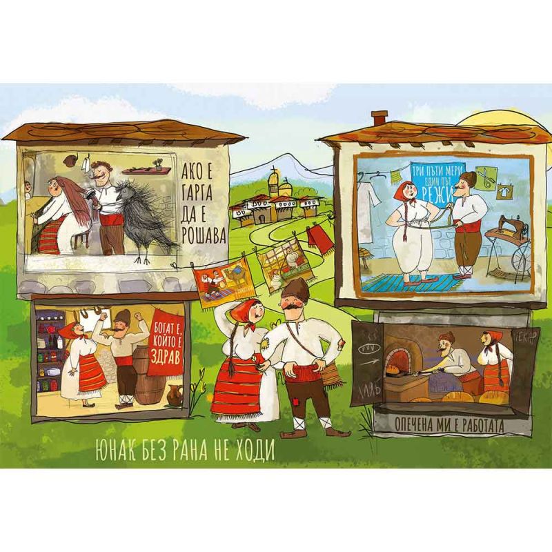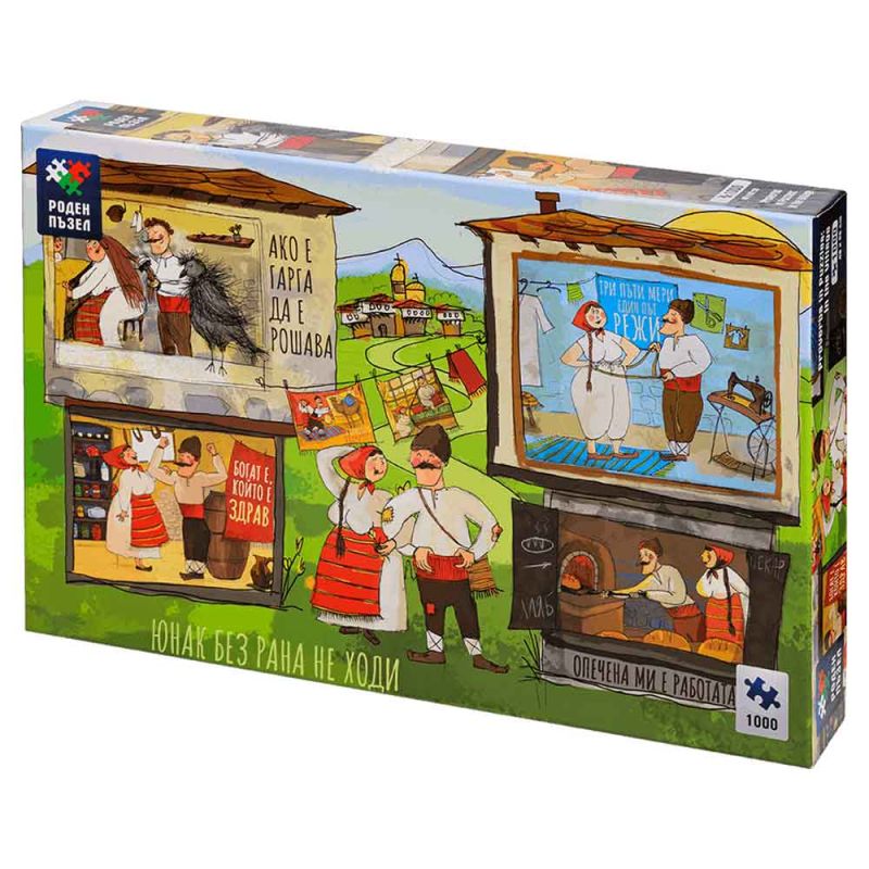 „Поговорки в пъзели: На село“ е първата част от колекция, вдъхновена от българския фолклор и народната мъдрост. Този уникален пъзел съчетава красиви илюстрации и любими български поговорки, които оживяват в атмосферата на старото селце — там, където традициите и трудолюбието се предават от поколение на поколение.