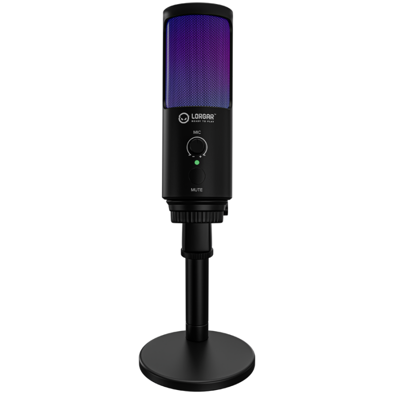 LORGAR SMP40, RGB Microphone with external mute button and metal stand, Black