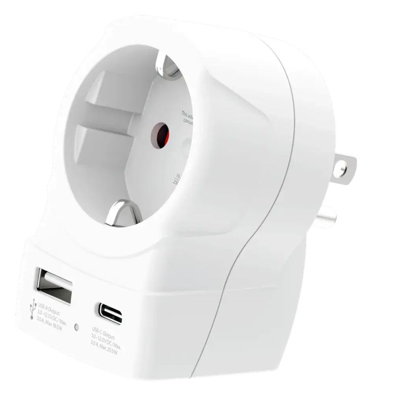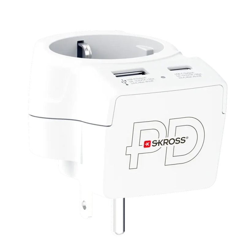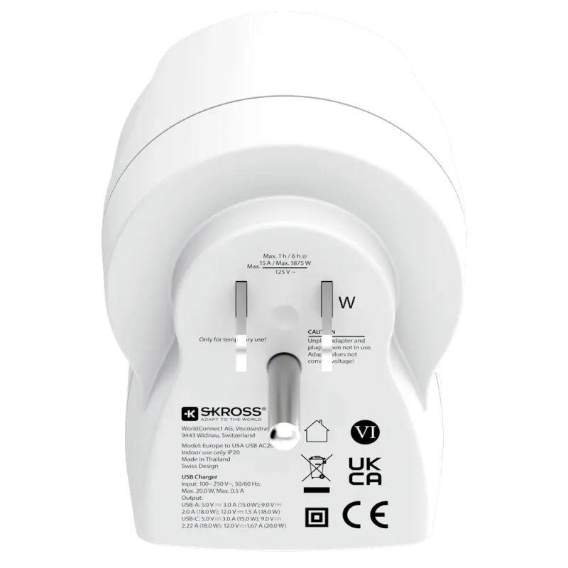 Skross универсален адаптер Europe to USA+1xUSB A/C, 20W , 1500284E