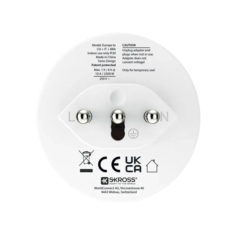 Skross универсален адаптер World to CH+IT+ Brasil, USB