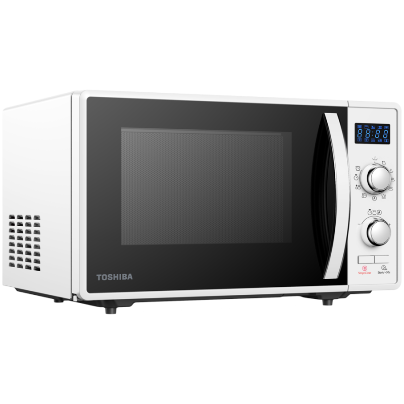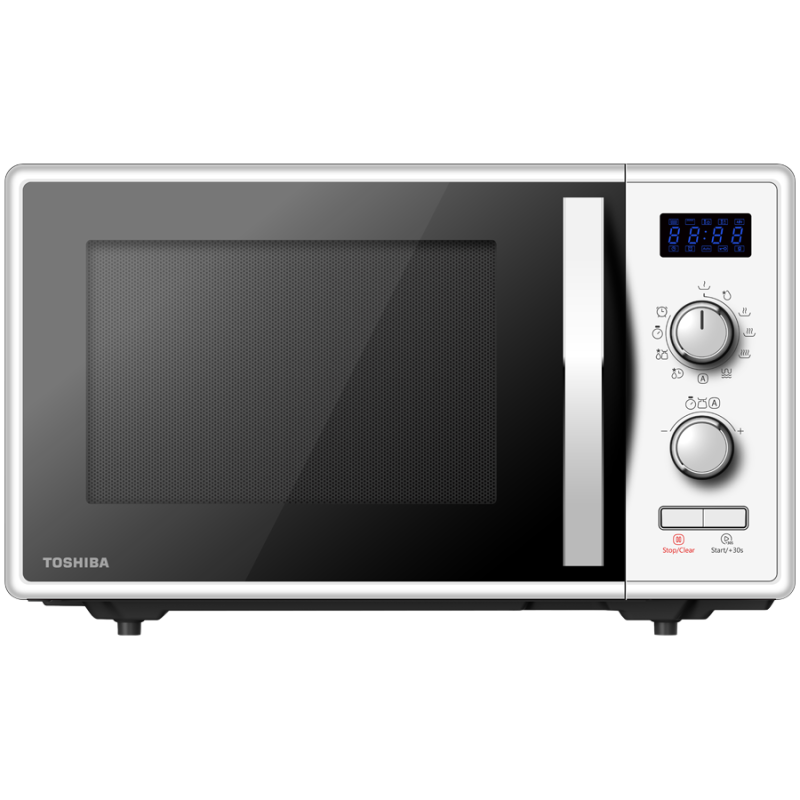 Toshiba MW2-AG23P(WH) 3-in-1 Microwave Oven with Grill and Combination Hob, 23 Litres, Rotating Plate with Storage, Timer, Built-in LED Lights, 900 W, Grill 1050 W, Pizza Programme, White Size: 485 x 403 x 296