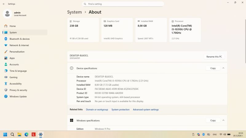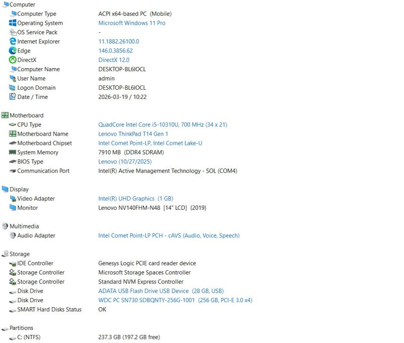 Портове: 1 x HDMI 1.4b, 2 x USB-C, 2 x USB 3.2 (1 always on), 1 x mini RJ-45 Gigabit Ethernet, 1 x 3.5mm combo audio jack, 1 x microSD card slot