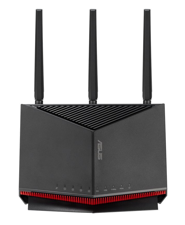 Рутер Asus Gaming Wireless Router, RT-BE86U, BE6800, Dual-Band, Quad-Core 2.6GHz CPU, 256MB/1GB Flash/RAM, 4K-QAM, MLO, 10G port, 2.5G quad-port, AiProtection Pro, Adaptive QoS, VPN Fusion, Instant Guard, IPTV, OFDMA, MU-MIMO, UTF-8 SSID, AiMesh, Black