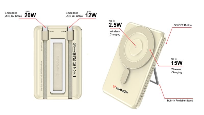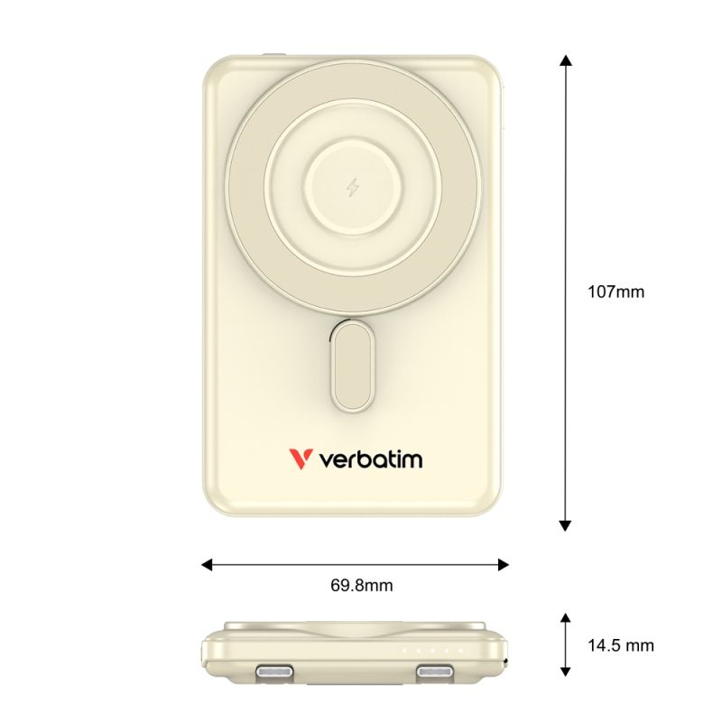 Външна батерия Verbatim Charge 'n' Go 2C Power Bank Magnetic Wireless 5000mAh with 2 USB-C Cables & Stand Gold