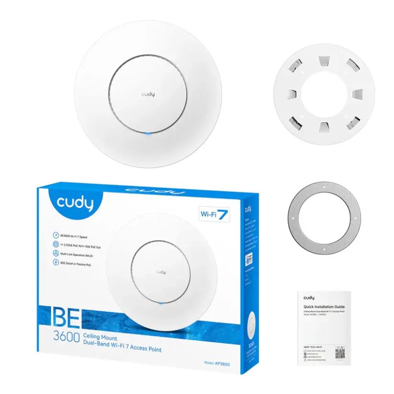 Безжична точка за достъп Cudy AP3600-P, WiFi 7 BE3600, 1x2.5 Gbps, PoE Adapter