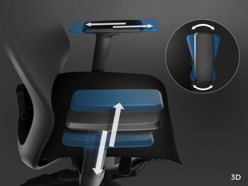 Three-stage lumbar adjustment, Height and angle adjustable mesh headrest